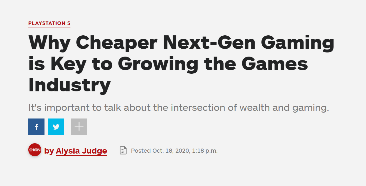 In 2020, I was interviewed by journalist, Alysia Judge, on wealth and class disparity in games, and the impact of the affordable Xbox Series S.