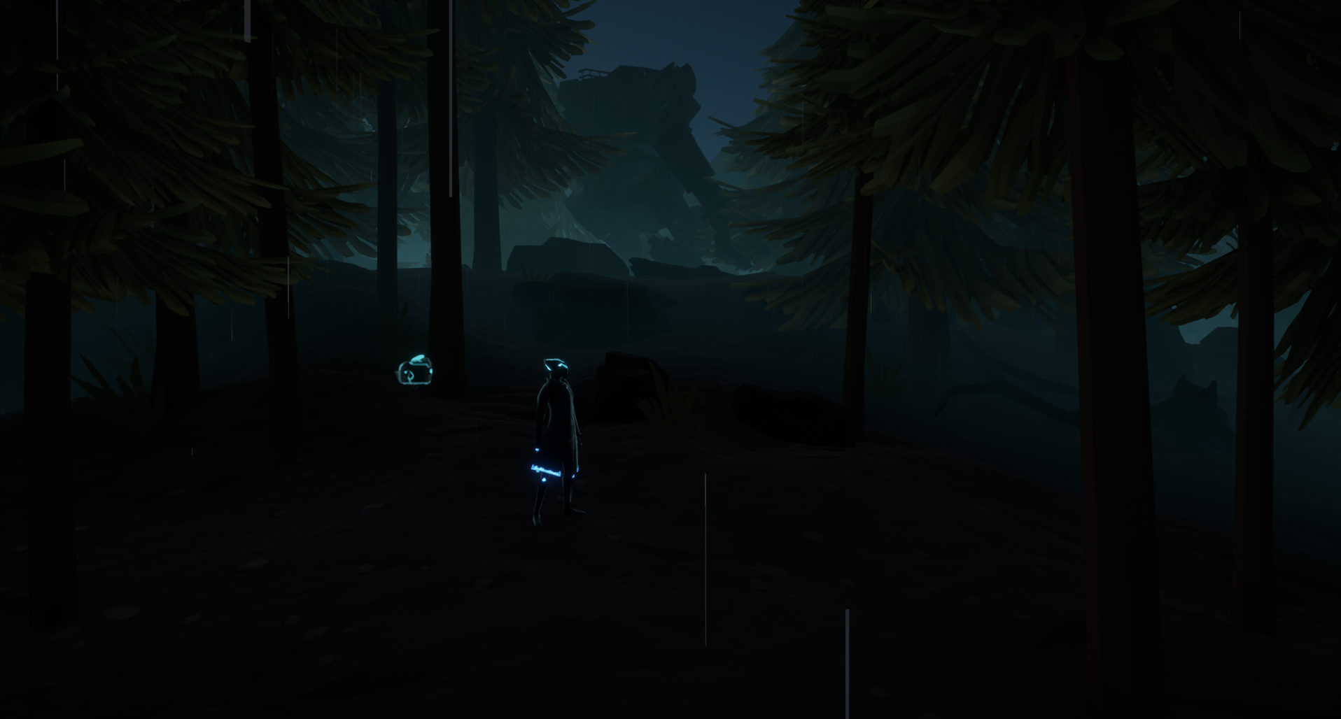 The Outskirts' forest is abandoned territory, populated by the dying, titan-like Crane robots. They were left mid-work as their operators scattered and society fell apart around them.