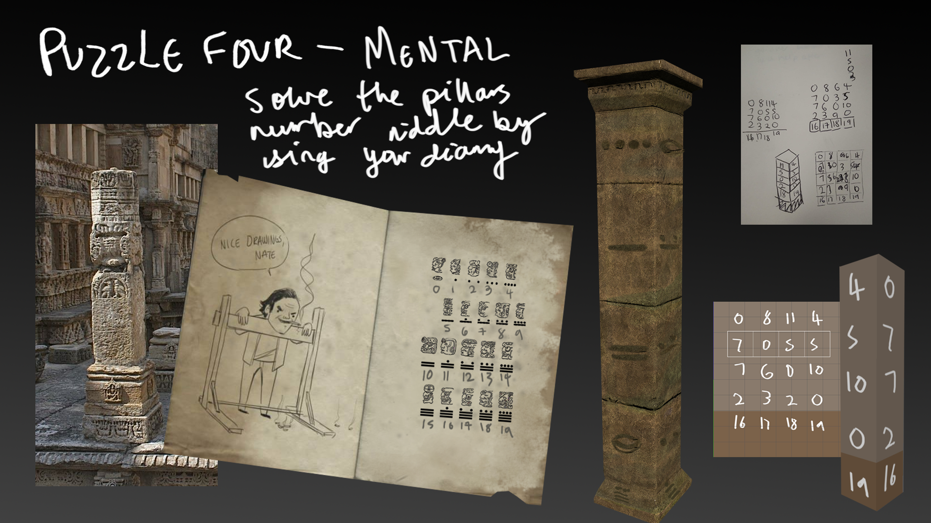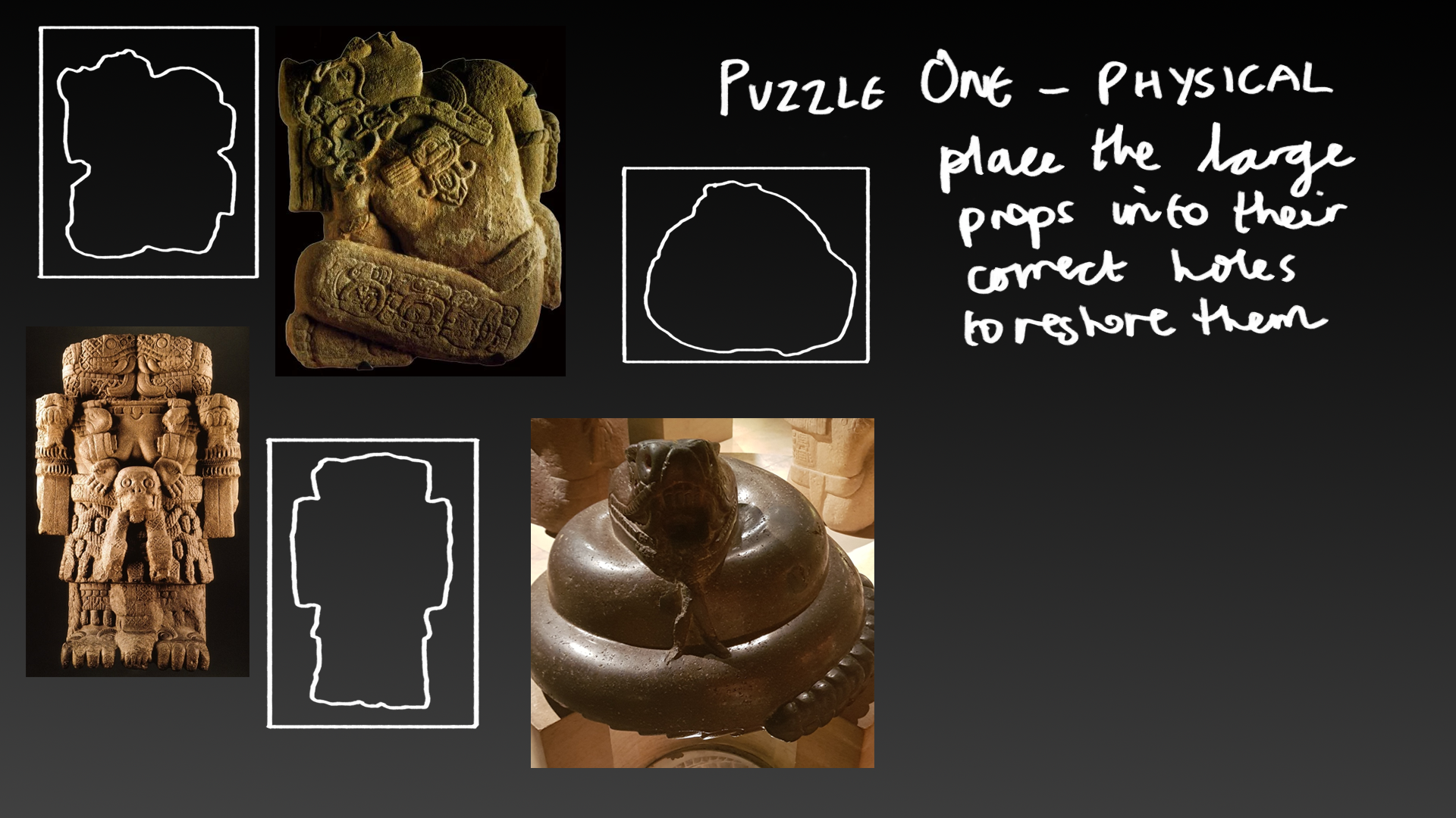 Inspired by the Crystal Maze, I designed and pitched these four puzzles for the four levels in the temple.